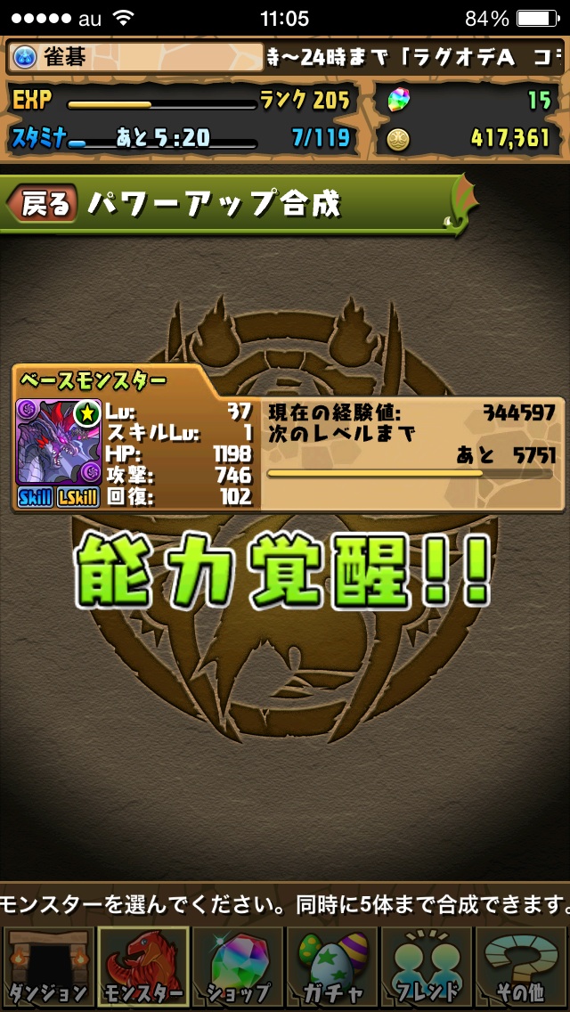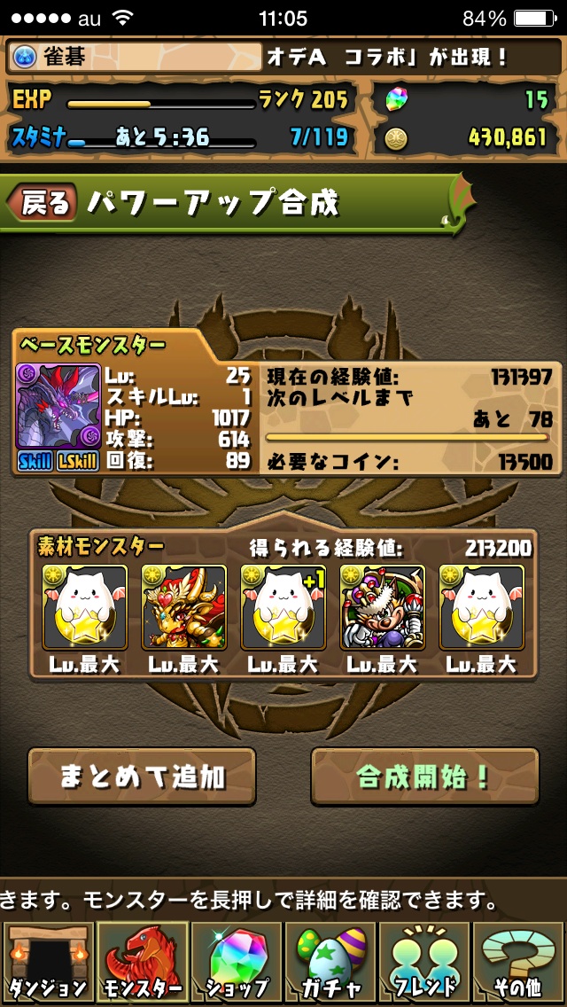 たまドラ3体となんか配布物の経験値素材を食わせて