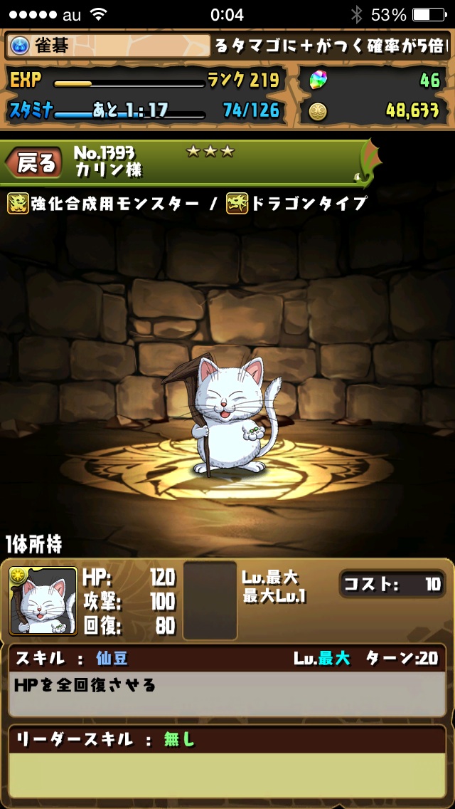 コラボダンジョンは、ソニアからリーダー呂布に変更でHP3万越えで攻略安定しました。