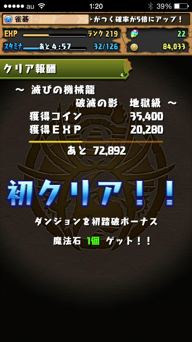 経験値でかいけど、ランク1上げるのに変身前のフリーザの戦闘力と同じ位あると、ちょっときついね。