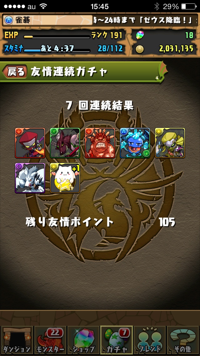 さてサタン進化の後は友情ガチャ7連発だ!!