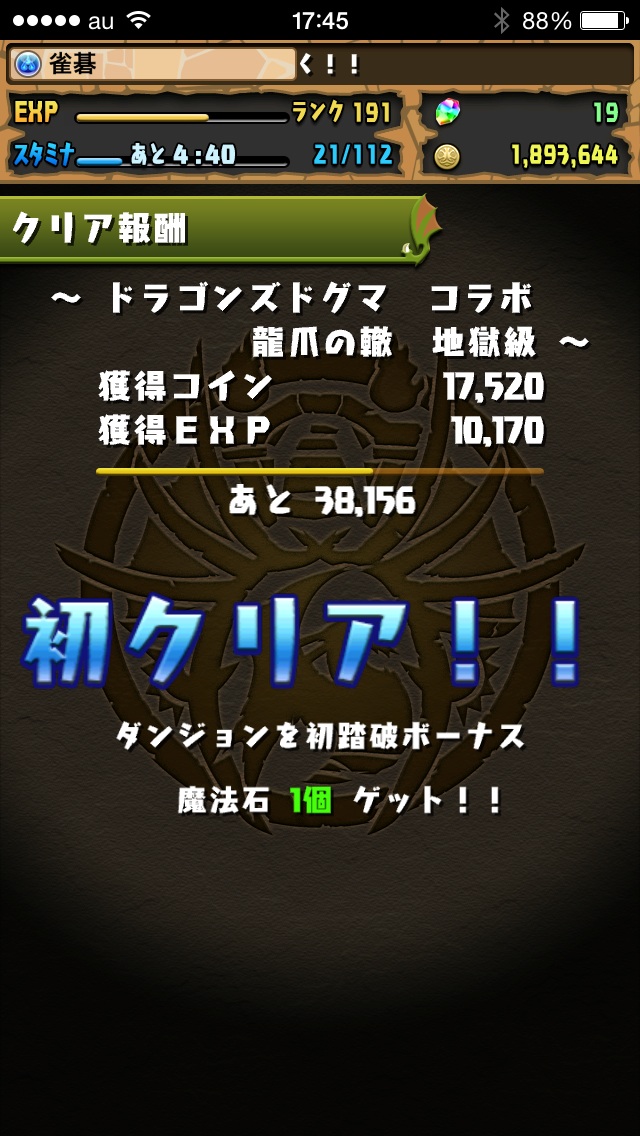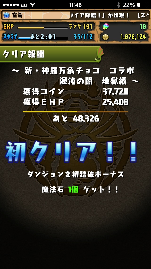 そして森羅万象コラボで前回クリアして無かった地獄級に挑戦