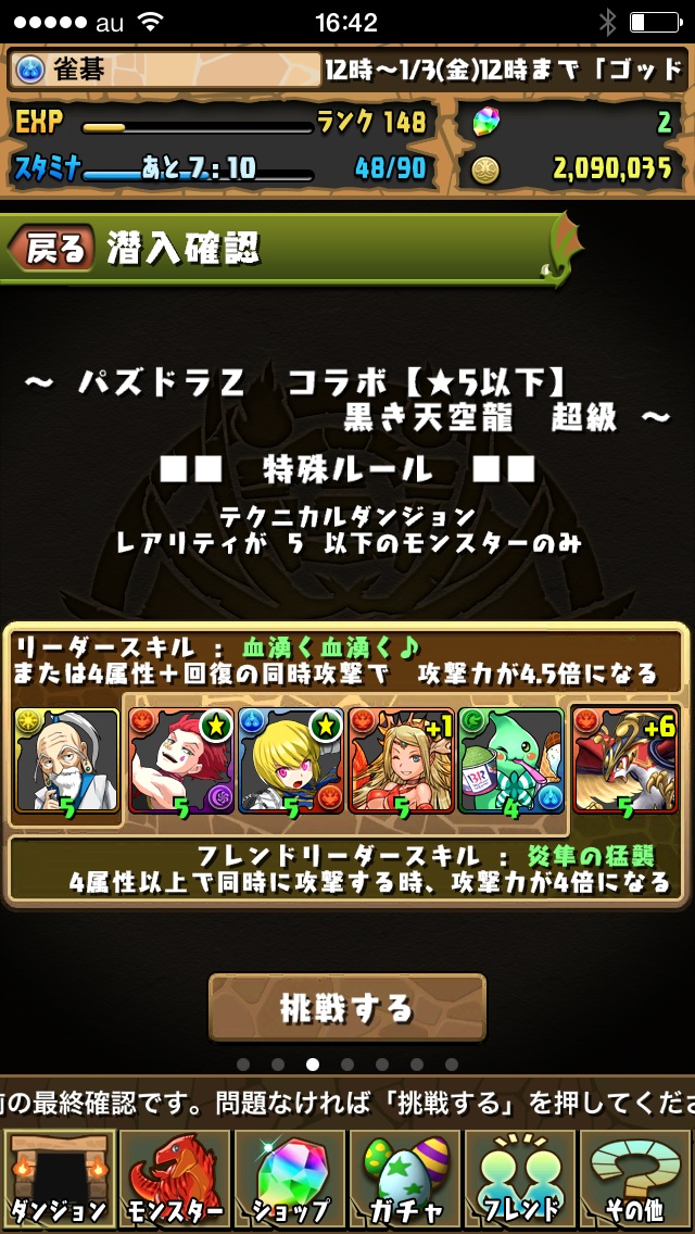 このネテロリーダーのチームでパズドラZコラボに挑んでみました