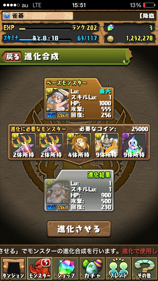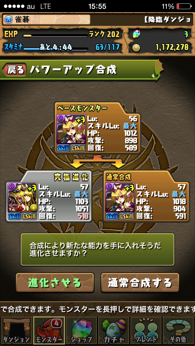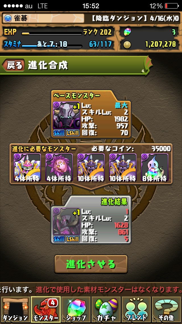 光のモンスターで進化してない子たちが育ってきたので進化!