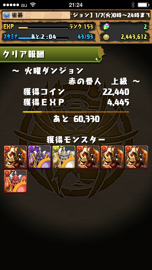 なんて言ってたら赤の番人のほうで番人3体ゲットww