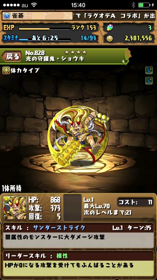 フレガチャから出てきた光のオーガ枠?ショウキを進化!