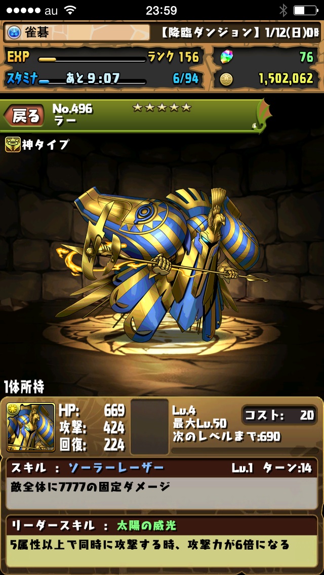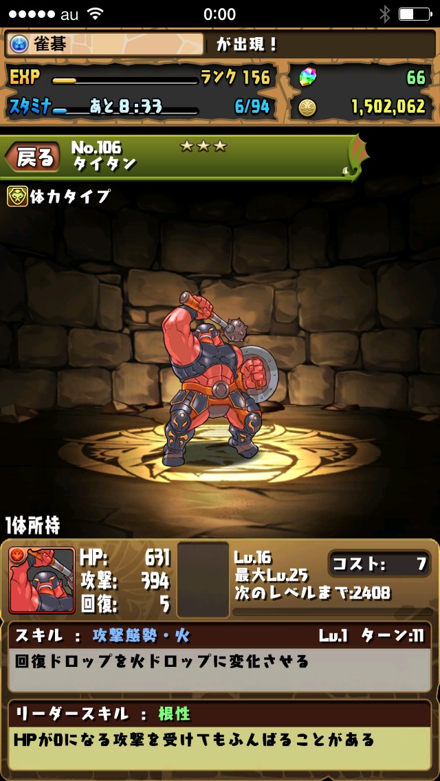 早くスタミナ100越えてチョキメタ系を周り易くしたいな