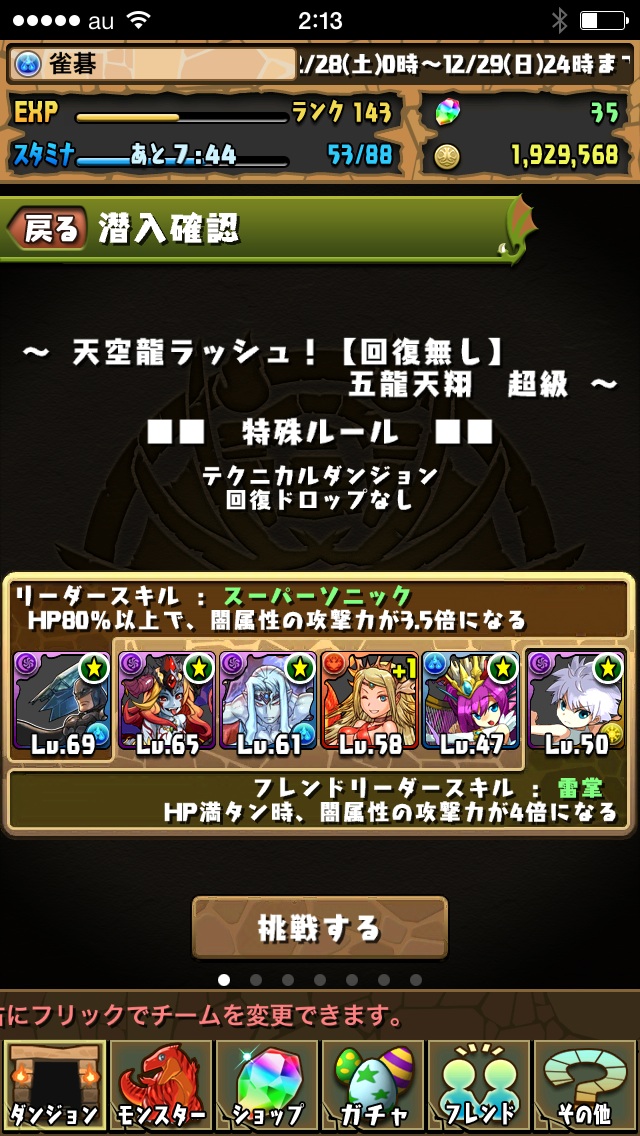 天空龍ラッシュも1回超級やってみた