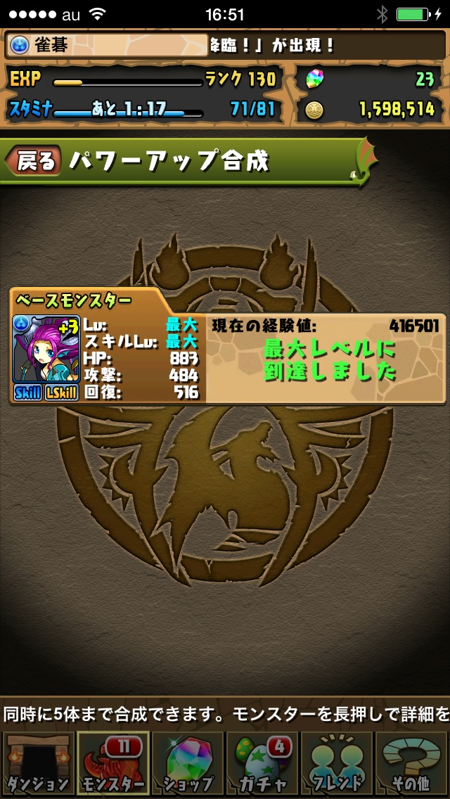 最初レベル上げたとき「最大レベルに到達しました」って出たのに