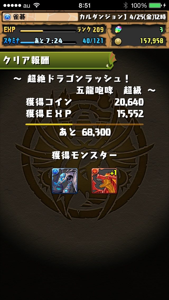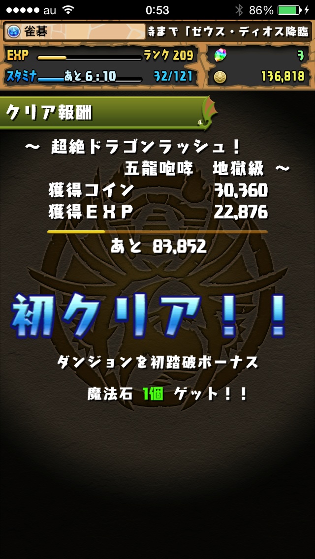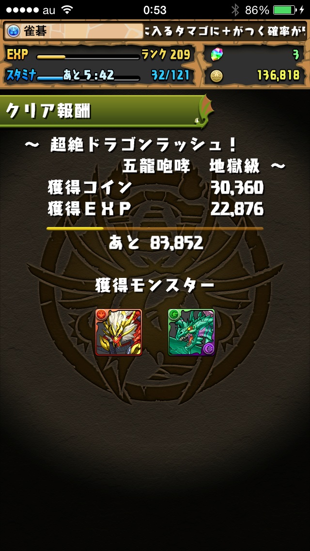 超絶ドラゴンラッシュの地獄も何とかクリア