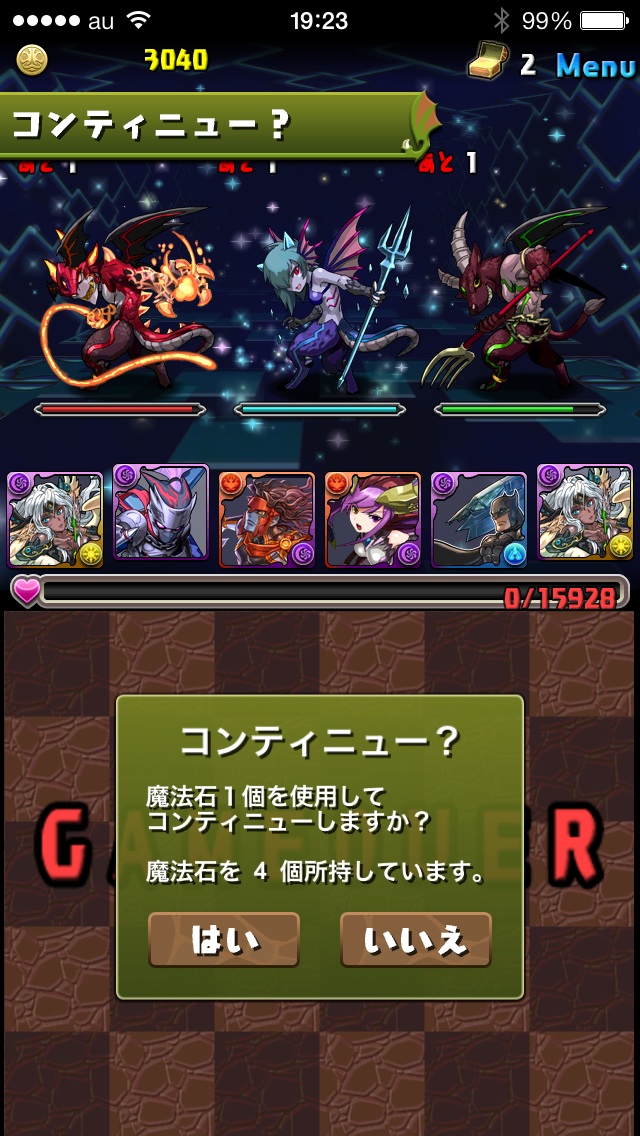 全回復貫通してしまってからの@1デーモン×3で乙!