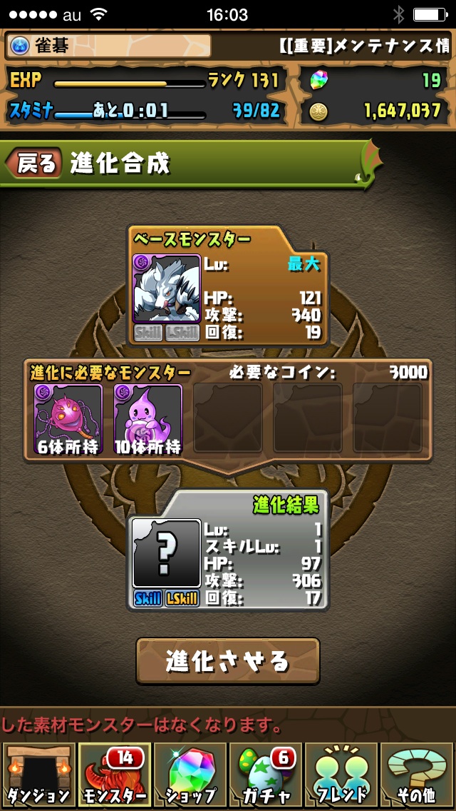 ☆5以下制限ダンジョンで使ってみたかったから進化させないでいたけど