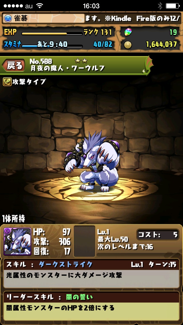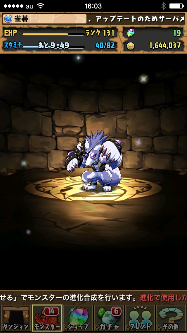続いてこの前フレガチャで引いた狼のやつも進化