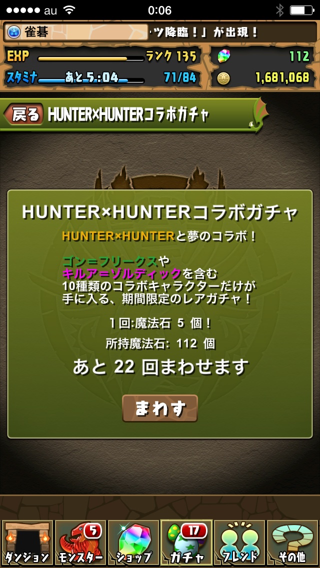 ガチャドラのヒソカさんチーッス!
