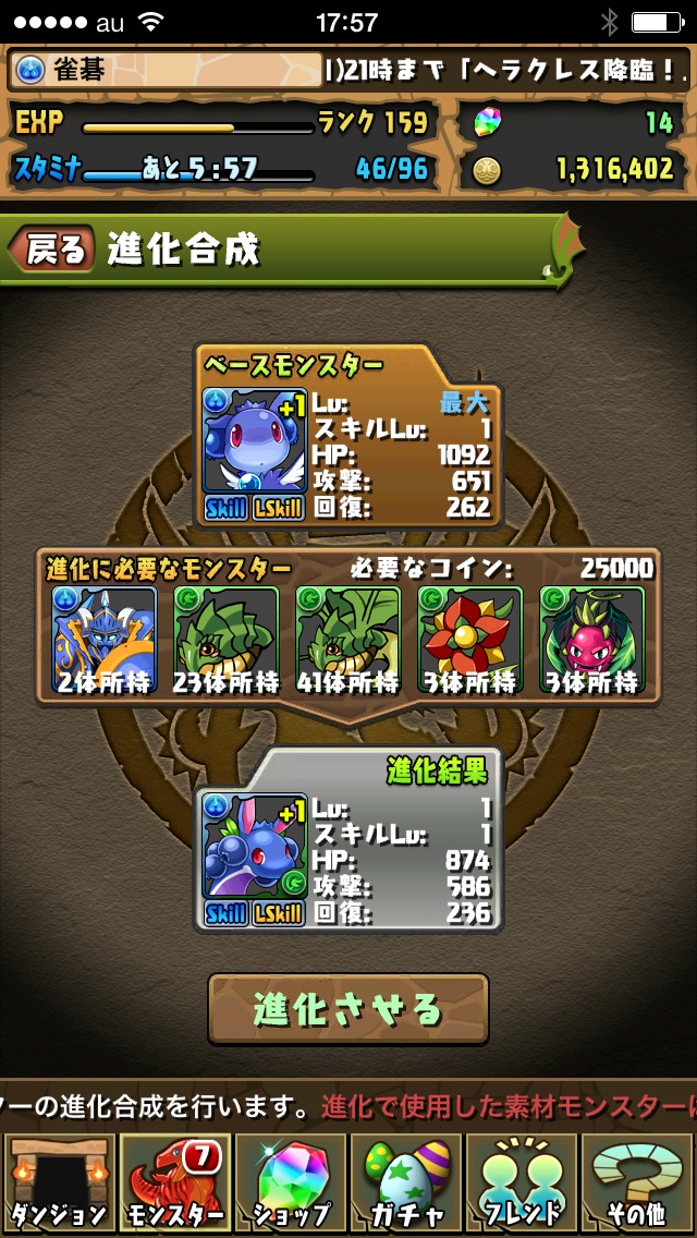 べりドラ進化前を進化させて