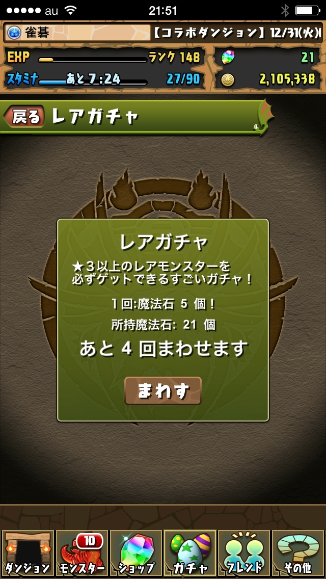 なんだか今日はすごく魔法石を無駄遣いしてしまった・・・