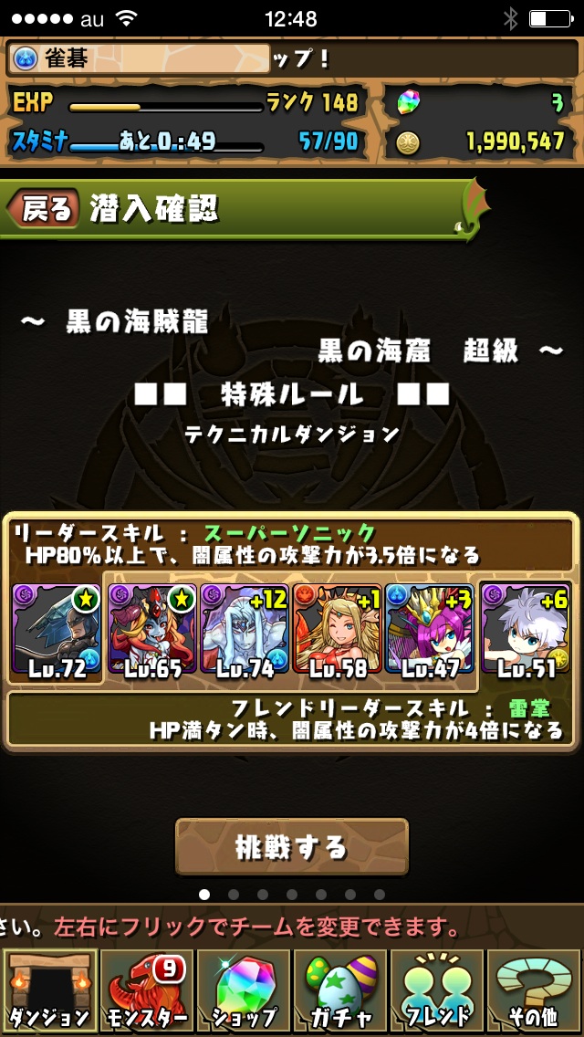 いつもの闇パで黒の海賊龍超級リベンジ!