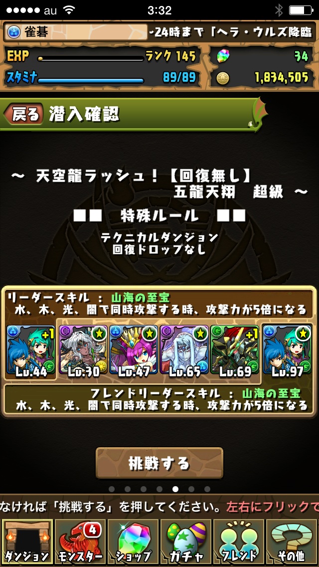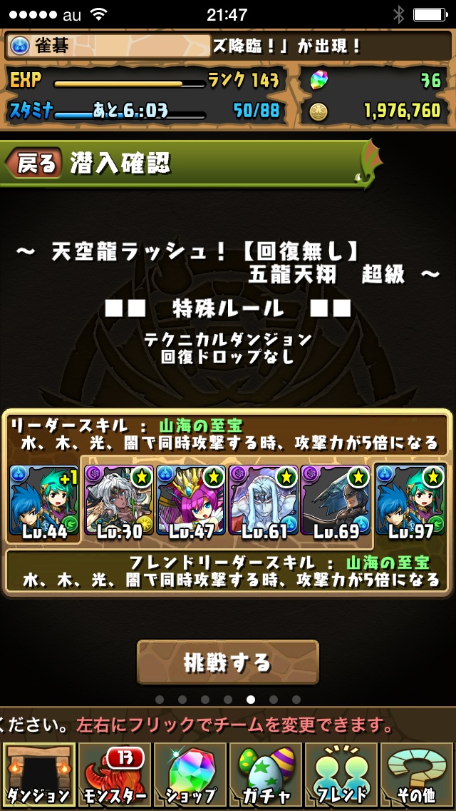 というチェンジを行って海山での天空龍を再度チャレンジ
